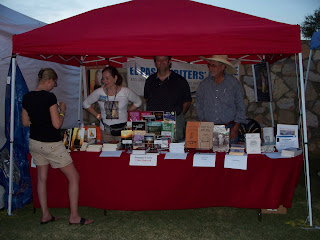 Attended my first book sale/signing this weekend at the La Viña Winery Harvest Festival. We were situated right next to the very loud music stage in the El Paso Writers’ League booth. The booth was nice and it was loaded with books by our members. I sold 3 Saturday and 2 Sunday, but that was just my own. I sold several books by other authors as well. I am not and never will be real pushy. My theory is: I want people to get the right book for them. No sense having them mad at me for talking them into the wrong book plus badmouthing the book to their friends. Better for everyone if they say: “I got it from El Paso Writer’s League. The guy was really nice and the book was good.” Good for me, good for EPWL, and good for the author.